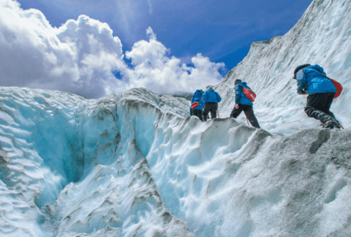 - 冰川徒步:在馬塔努斯卡冰川學習冰爪使用技巧。馬塔努斯卡冰川是阿拉斯加著名的冰川之一,遊客可以在這裡進行冰川徒步活動。在徒步前,專業的導遊會教導遊客如何使用冰爪,確保遊客的安全。穿上冰爪,踏上冰川,遊客可以近距離觀察冰川的結構和特徵,感受到冰川的雄偉和神秘。在徒步過程中,還有可能看到冰川崩裂的景象,這是一種令人震撼的體驗。