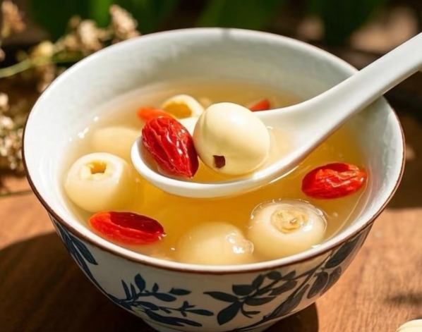 - 做法:泡發的銀耳、蓮子、紅棗放入鍋中,加水約6-8分滿。大火煮滾後轉小火慢燉40分鐘(或用快鍋15分鐘),直到銀耳出膠、蓮子軟爛。加入枸杞和糖再煮5分鐘。冷熱皆宜!