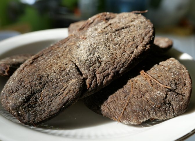 Q3:老菜脯放久了表面有白白的點點,是發黴還是鹽析?還能吃嗎? 這是超級關鍵的問題!老菜脯在乾燥過程中或存放時,表面有時會出現「白色結晶」,這通常是「鹽霜」(鹽分析出),擦掉後本體無異味、質地依然乾燥就沒問題。但如果白點是毛毛的、會擴散,聞起來有明顯的黴味或異味,或本體變軟濕黏,那就是「發黴」了!絕對不能吃! 黴菌毒素非常頑強且有害,即使切除發黴部分,毒素也可能已擴散到內部,千萬不要捨不得,為了健康只能丟棄。當你分不清是鹽霜還是黴時,寧可保守一點,別冒險!相信我,吃壞肚子找醫生更花錢。