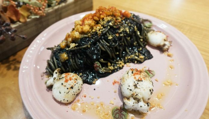必點選單:墨魚汁海鮮義大利麵(墨魚汁濃厚,海鮮料多)
