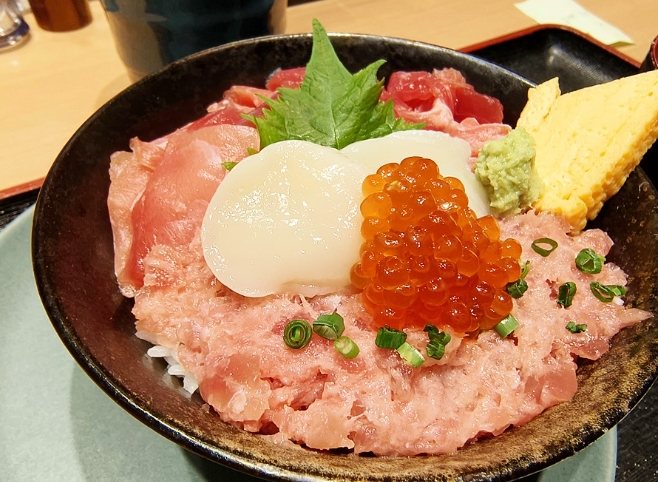大和壽司是豐洲市場招牌,開業超過50年,師傅手法老練,主打當日捕獲魚貨(豐洲市場優勢就是新鮮度)。我點了招牌金槍魚握壽司,魚肉油脂豐厚,入口軟綿像奶油(新鮮到沒腥味)。缺點是排隊長(我排了40分鐘),但值得一試。
